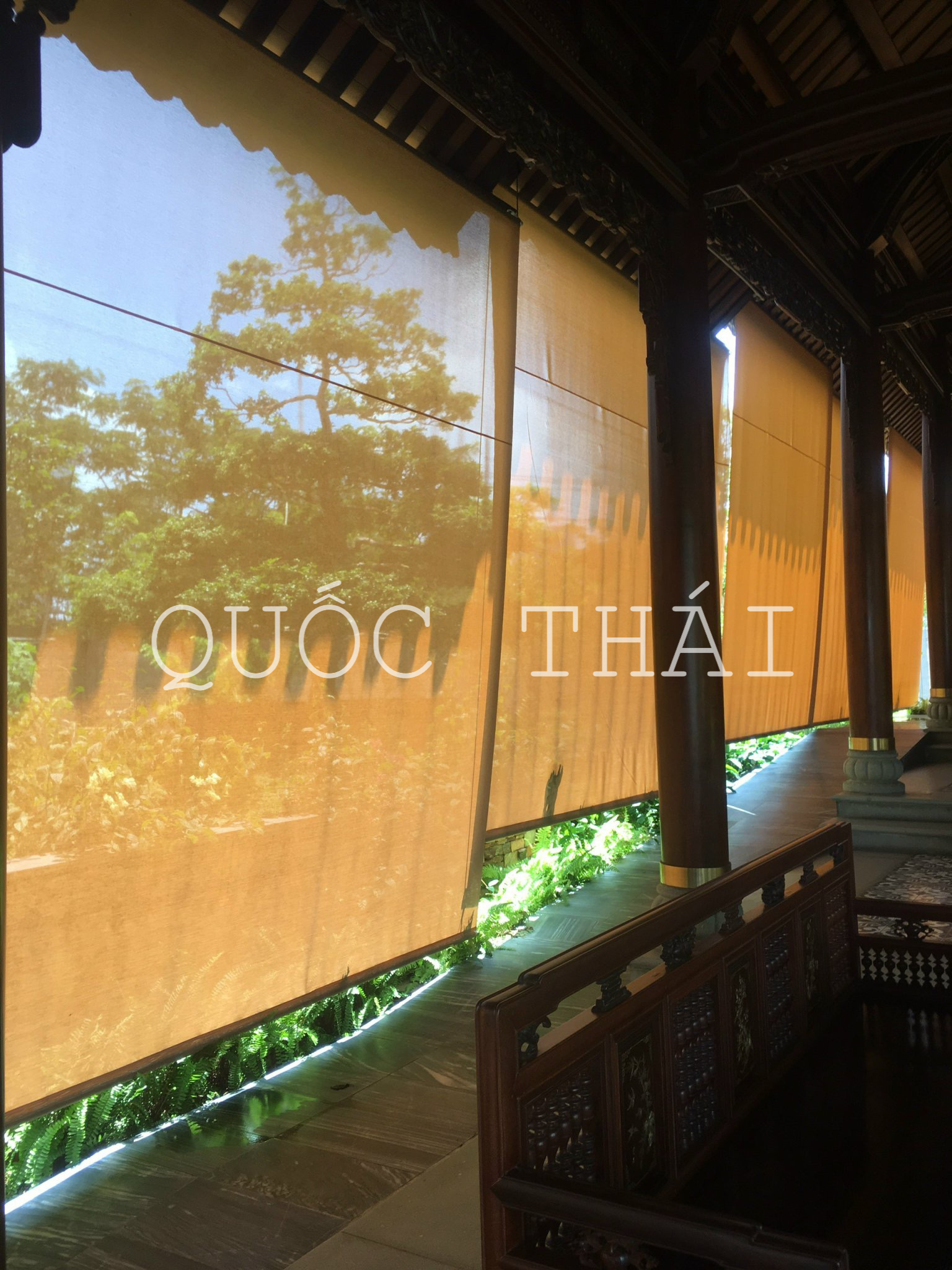 Rèm cuốn lưới có cáp động cơ là sự kết hợp giữa vải rèm lưới (xuyên sáng/nhìn xuyên qua), hệ thống cuốn tự động (motor) và cáp dẫn hướng hai bên. Chất liệu vải chuyên dụng chịu nắng mưa tốt.