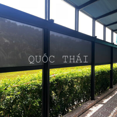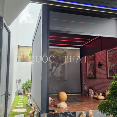 Trọn bộ bao gồm: Hộp cuốn, máng rèm, thanh ray nhôm chịu lực dẫn hướng, vải rèm, thanh đáy và động cơ chịu tải lớn.